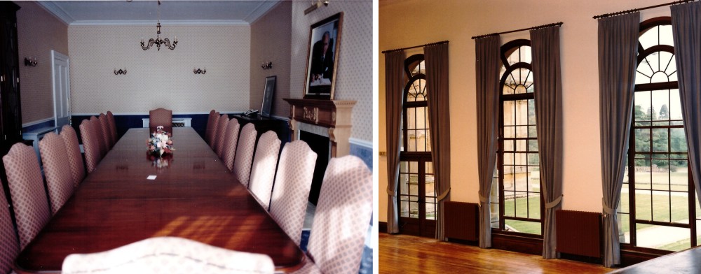 Board Room Photo We completley refurbished this boardroom, having the table, chairs and large side cabinet and fire surround made to order; also curtains carpet and wall covrering supplied and fitted.